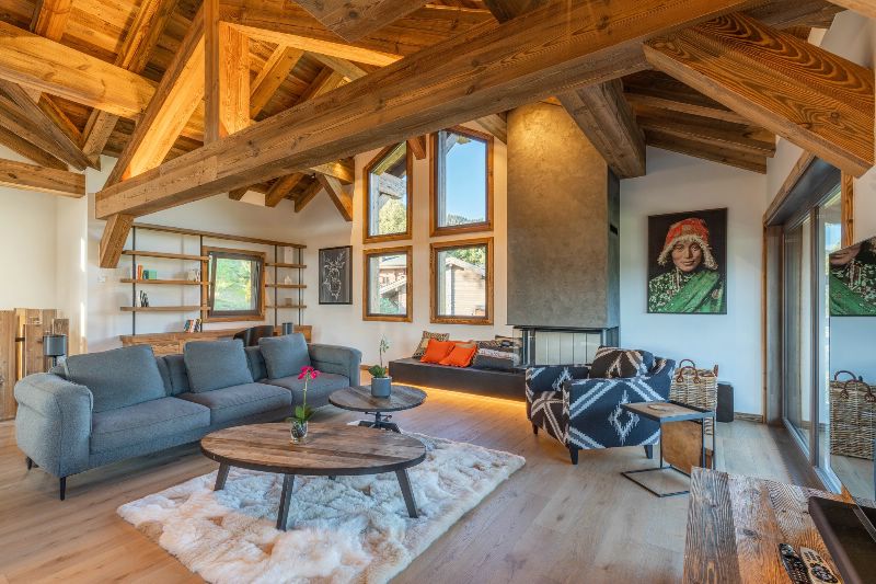 The main living area has comfortable seating for 12 people, with large windows and views over the village, to Chavannes side. There is a large fireplace with glasses, a large screen TV and comfortable sofas.