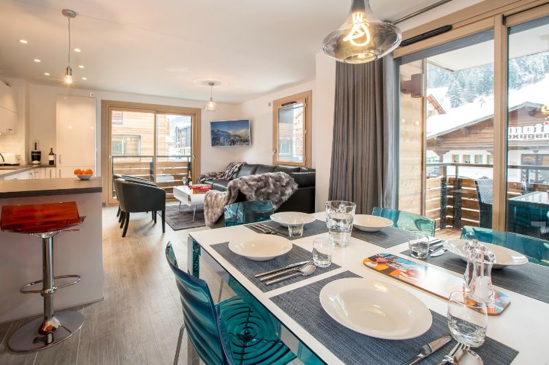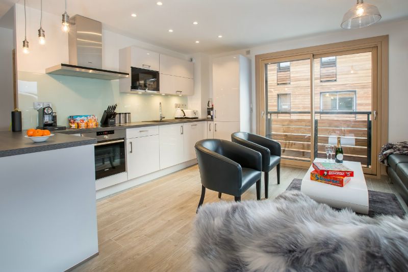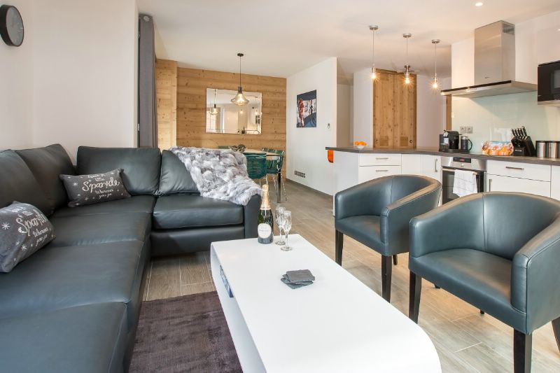 Chalet Joli is a luxury apartment over 2 floors and sleeps up to 10 guests. It has a private hot tub on the terrace. The open plan living area is on the upper floor with a balcony to the front of the residence, making the most of the beautiful mountain views beyond. A state of the art kitchen with everything you or your private chef would need. There is dining for up to 10 guests and comfy seating. The large windows let in lights and reveal mountain views to the south and east.